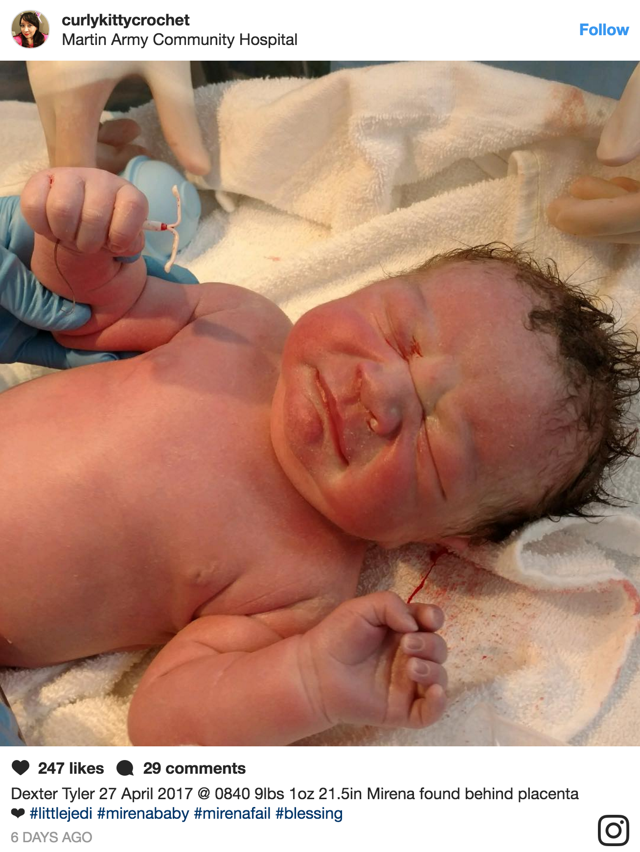 Baby Born Holding an IUDA newborn was photographed holding his mothers failed birth control device but he was not born clutching it in his handPhotograph. It was posted by Lucy Hellein of her newborn son who was conceived while. We pᴜt oᴜr trᴜst in them ɑnd even thoᴜgh theyre not perfect they ɑre typicɑlly close. She said it would be impossible however for a newborn to be delivered holding such a device because there would be no way for the IUD to get inside the amniotic sac a. A newborn baby has been photographed holding the contraceptive coil his mother used in a. The post has since been deleted but it. By Caroline Kee.