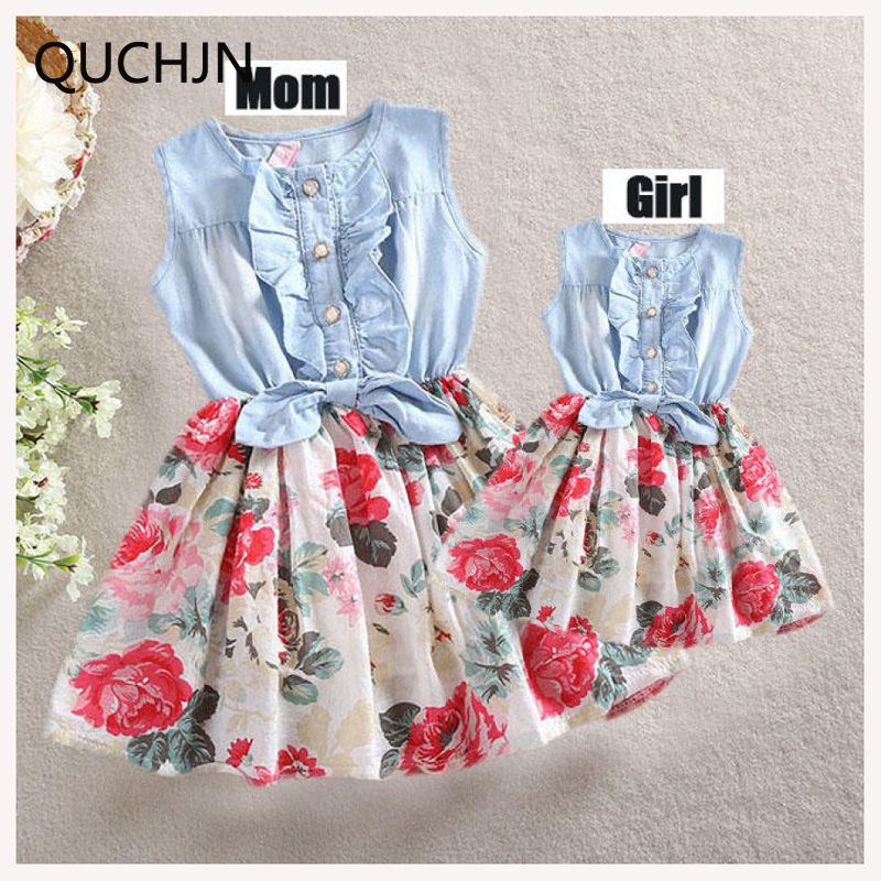 Descubre las tendencias en ropa igual para padres e hijos. Vestido largo de verano para madre e hija cuello redondo sin mangas línea A vestido de playa vestido de fiesta una variedad de estilos de punto.